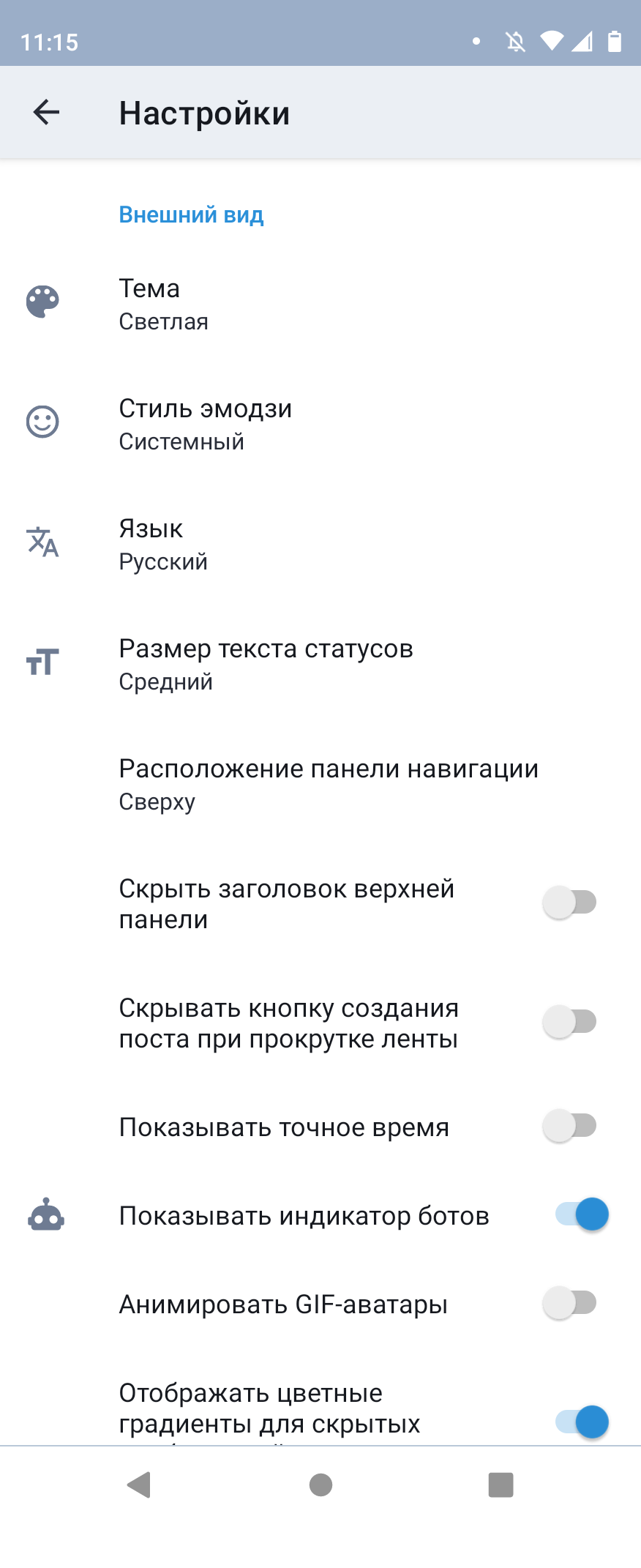 Вы заметили, что на моих скриншотах Мастодон на русском языке и в светлых тонах. Однако по умолчанию он может оказаться на английском (в зависимости от языка